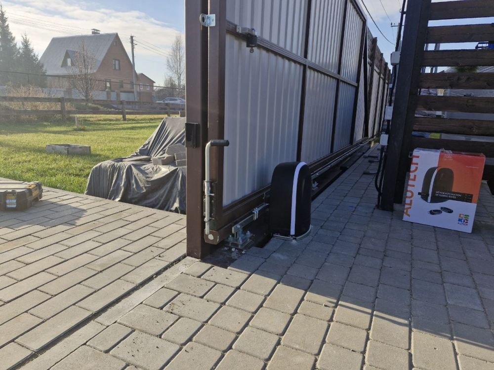 Стоят откатные ворота, нужно было поставить привод. Выбрал Алютех, т.к. самый большой срок гарантии и работают при -25.