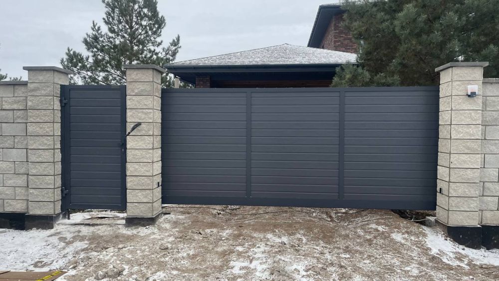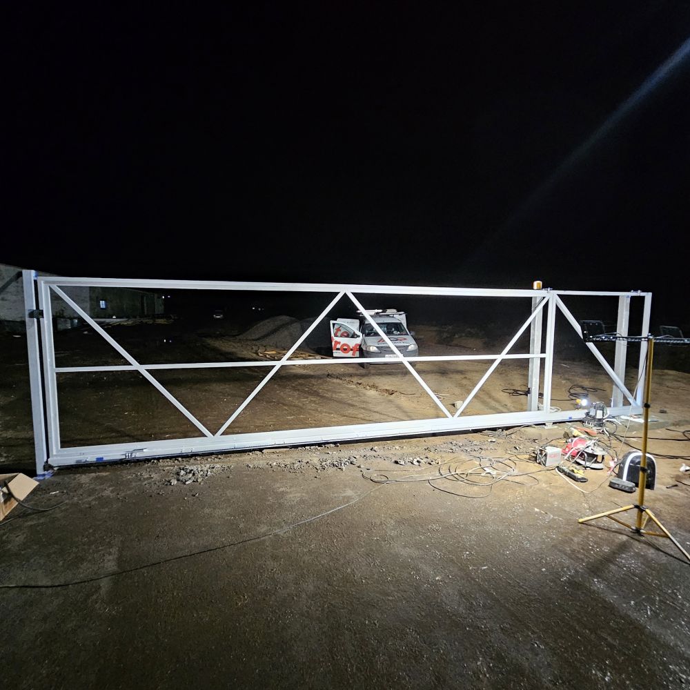 Поставили на въезд на завод откатные ворота Alutech без заполнения — планируем сами доделать позже.