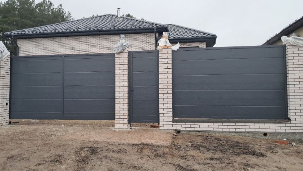 Откатные ворота с секциями ограждения