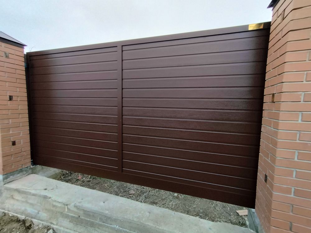 Доволен работой ООО «Механика А», установили мне ворота и калитку из алюминиевого профиля с заполнение сэндвич-панелью.