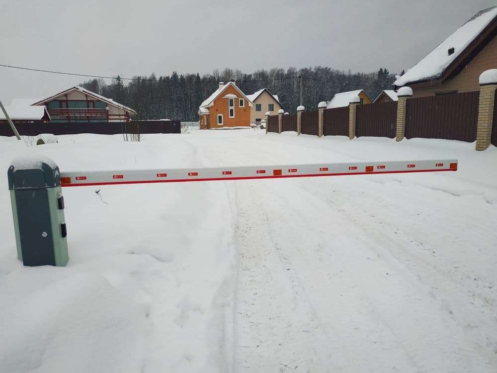 Поставили шлагбаум, чтобы оградить территорию поселка от посторонних. Работает стабильно, для удобства укомплектовали модулем GSM, чтобы управлять с телефона.