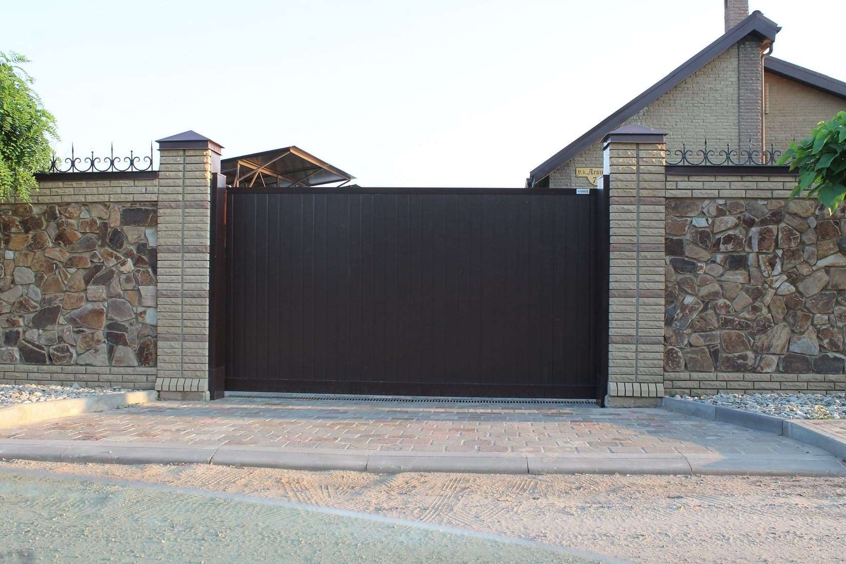 Откатные ворота в цвет нашего забора сруба