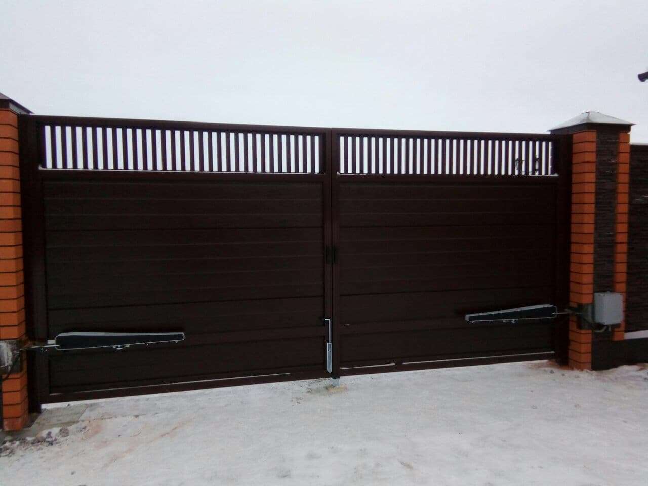 Менеджер компании "Линия Комфорта" посоветовал мне выбрать алюминиевые откатные ворота с зашивкой сендвич-панелями и с автоматическим управлением. Ворота действительно хорошие, очень удобны в использовании и красиво выглядят. Всем доволен, пользуюсь уже 1,5 года, никак...